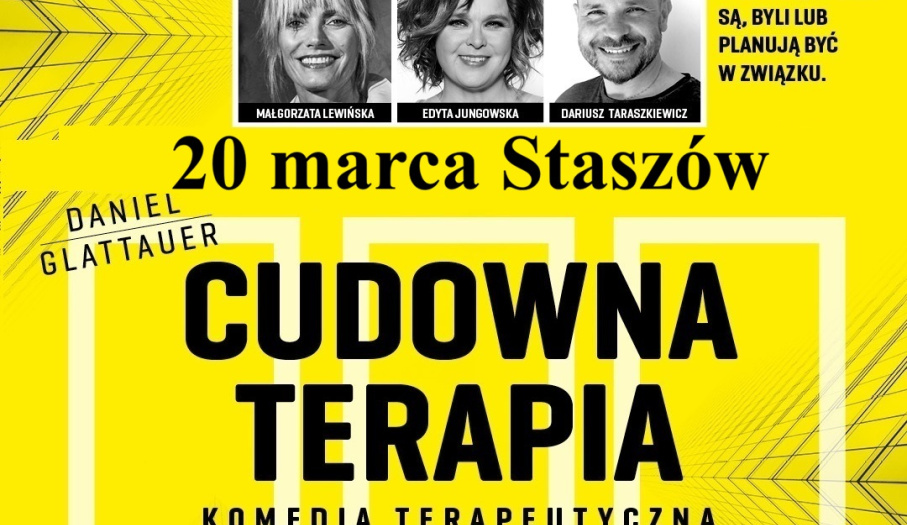 20 marca w Staszowskim Ośrodku Kultury odbędzie się spektakl „Cudowna terapia” – komedia terapeutyczna o małżeństwie z wieloletnim stażem, które trafia do specjalisty, by spróbować naprawić swój związek. Błyskotliwy tekst, znakomita obsada i pełna humoru historia sprawiają, że to przedstawienie może być świetną propozycją dla wszystkich, którzy są, byli lub planują być w związku.